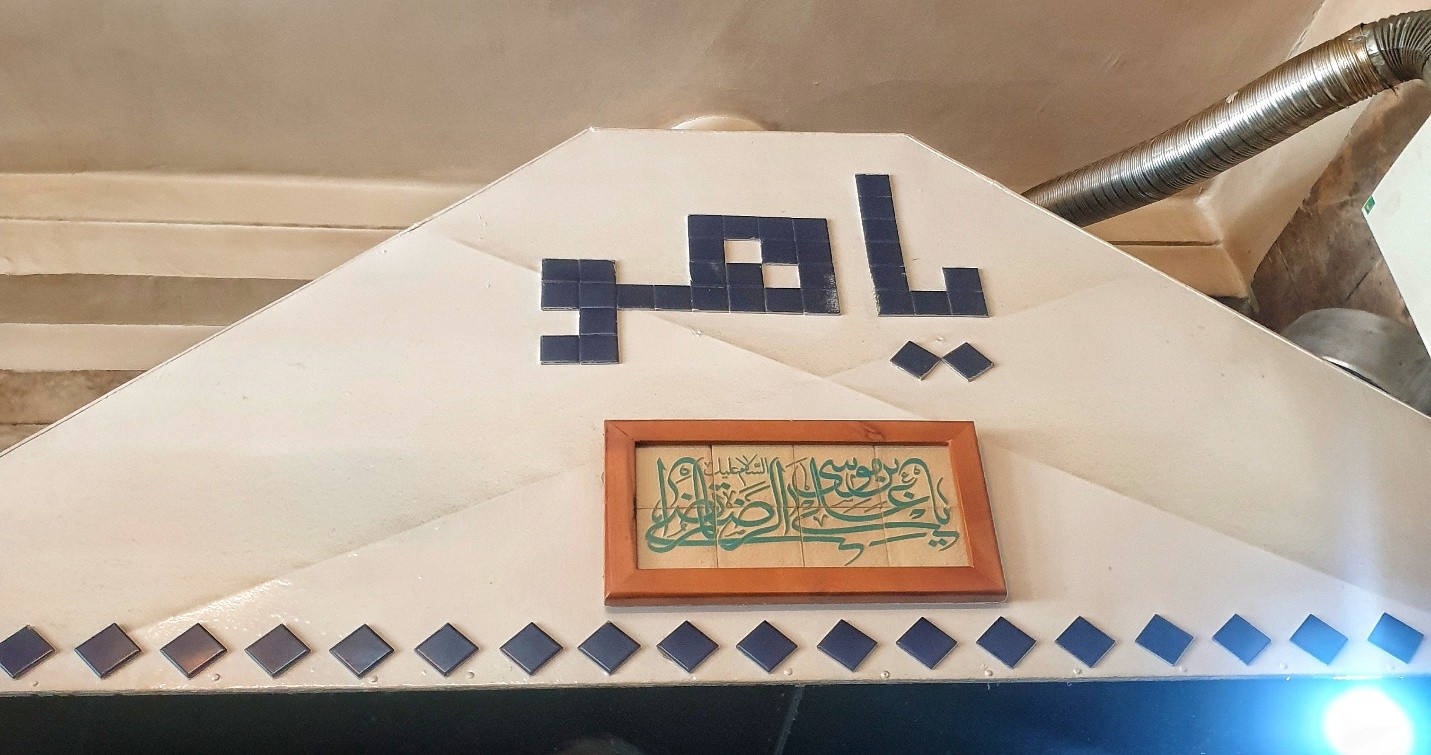 از پلهها که پایین رفتیم، کمی آنطرفتر، دکانی بود که سر درش، مرغ عشقی را در قفس آویخته بودند. دکان چنان کوچک بود که همهی ۲۰ نفرمان در آن جا نمیشدیم. ناگزیر به دو گروه تقسیم شدیم و به نوبت وارد گشتیم! چای با استکانهای قرمز برایمان آوردند و ما، فشرده بر نیمکتها نشستیم؛ گویی بر سفرهی درویشان بودیم و جایی برای تکان خوردن نداشتیم. چشمم به دو میل زورخانهای افتاد که کنارمان روی نیمکت جا خوش کرده بودند، گویی آنها نیز از بانیان مجلس بودند و منتظرِ نوبتِ چایِ خودشان بودند! پشت سرمان بر دیوار، عکسهایی بود و دو کلمه: "حسن آباد" و "قلهک". در مطبخ کوچکِ کنارمان، بر هواکشی بزرگ، با خطی خوش نوشته بود: "یاهو!" (البته قطعا نه از نوع مسنجرش!)